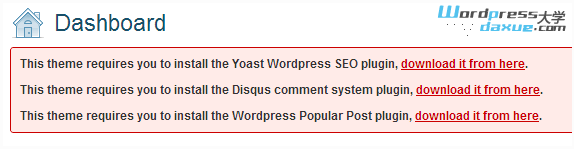 作为WordPress主题开发者,如果你的主题的某些功能需要借助某些插件才能实现,那你需要提醒主题使用者安装这些插件。在倡萌看来,最合理的提醒方法,就是启用主题后,在后台顶部提醒安装,如下图所示: