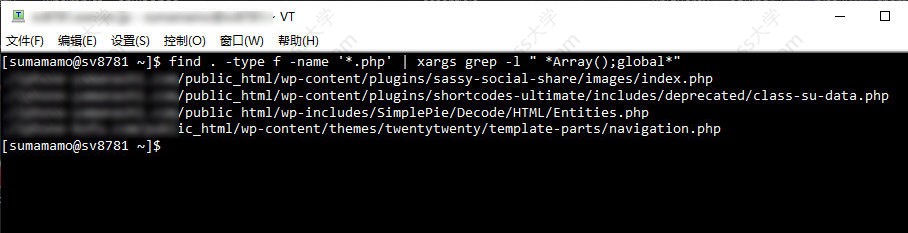 攻击者一般会在主题或插件的某些文件插入上面的恶意代码,通过上面的命令可以找到包含这个特征码的文件,然后下载它们,并删除整段恶意代码。注意不要删除这些文件,因为文件包含了正常功能的代码。